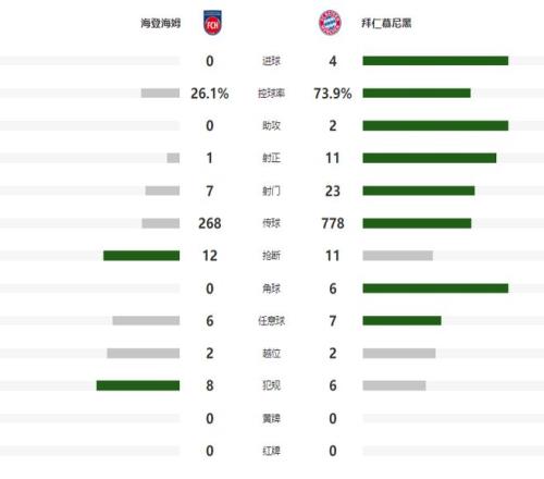 隨著主裁判一聲哨響,拜仁就反客為主,在場(chǎng)上壓制海登海姆猛攻,第15分鐘鐵衛(wèi)斯坦尼西奇,就幫助南大王取得了一個(gè)夢(mèng)幻般的開(kāi)局,右側(cè)角球開(kāi)出,隊(duì)友后點(diǎn)頭球擺渡到門前,斯坦尼西奇頭球破門,幫助拜仁取得了1-0的領(lǐng)先。 第32分鐘海登海姆門將解圍被隊(duì)友撞翻,伊藤洋輝的傳球打在防守球員身上后變線,門前的奧利塞笑納大禮,輕松推射建功,將領(lǐng)先的優(yōu)勢(shì)擴(kuò)大到了2球,5分鐘之后,凱恩禁區(qū)內(nèi)側(cè)身打門,角度太正被沒(méi)收。