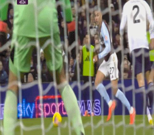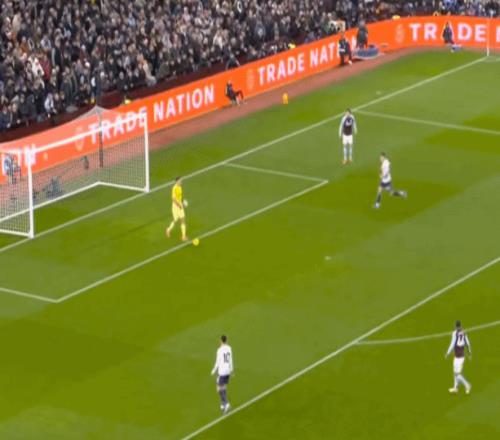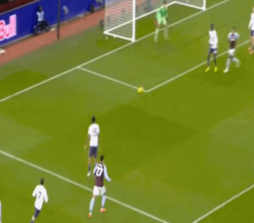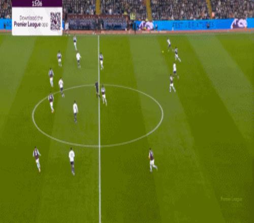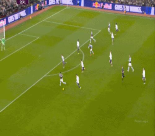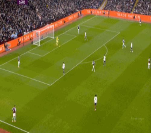 只不過這次的第一輪進(jìn)攻沒有成功,但在第二輪進(jìn)攻里,蒂勒曼斯在達(dá)洛特并不嚴(yán)密的防守下送出傳中,沃特金斯搶出前點(diǎn),讓球落到了羅杰斯的腳下,然后讓第一球再重現(xiàn)一次: