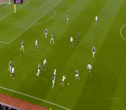 包括第二球也是一樣,前戲依舊是維拉吸引曼聯(lián)壓迫,然后用長(zhǎng)球連接前場(chǎng),還是拉出空當(dāng)之后,由麥金帶出轉(zhuǎn)移到弱側(cè)的進(jìn)攻: