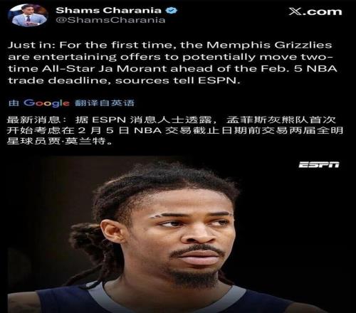 莫蘭特有太多的問題了,已經(jīng)被灰熊擺上貨架,今年交易截止日(2月6日)前大概率離隊。