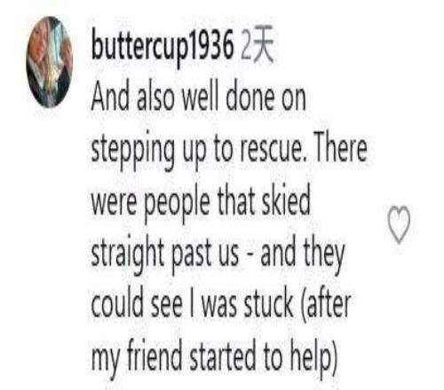 (截圖來(lái)自Ins@matteozilla) 網(wǎng)友們看了視頻,都在夸馬特奧熱心腸。 一名有類似經(jīng)歷的網(wǎng)友也現(xiàn)身說(shuō)法,講述被雪埋時(shí)有多么地危險(xiǎn)。 “昨天,我也遇到了這樣的事——我被埋了——我抬起頭,能把臉露出來(lái),但身體的其他部位都被困住了。每次我試著動(dòng)一下,臉又會(huì)被雪蓋住。我大聲呼救。謝天謝地,我的滑雪搭子聽(tīng)到了我的聲音。她只能看見(jiàn)我的一小塊護(hù)目鏡。太可怕了。” “而且,你能挺身而出救助別人,真的太棒了!當(dāng)時(shí)有些人滑著雪徑直從我們身邊經(jīng)過(guò),他們明明看到我被困了(就在我朋友開(kāi)始救我之后)?!?/strong>