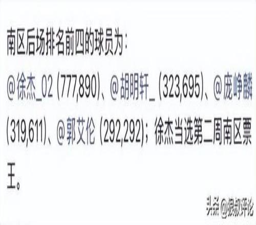 最為具有看點(diǎn)的是,南區(qū)首發(fā)后衛(wèi)的競爭,達(dá)到非常慘烈的地步,徐杰以70萬票坐穩(wěn)票王位置外,另外一個(gè)首發(fā)位置獲票非常接近。