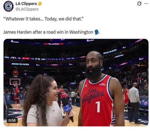 快船豪取6連勝!小卡傷缺逼出哈登殺手锏狂轟36分7板9助夢回巔峰
