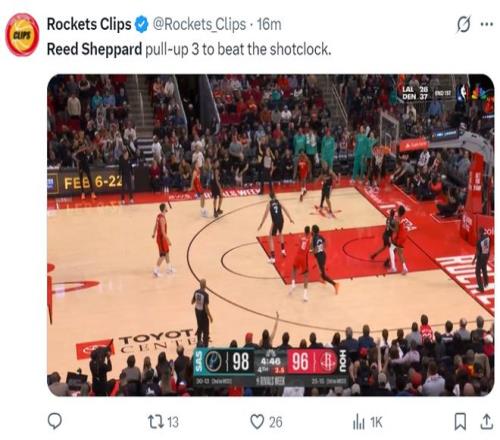 謝潑德末節(jié)12分登全美熱搜!火箭官方為他鼓掌休媒盼給核心地位