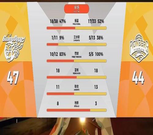 這一節(jié)兩隊你追我趕,廣東和天津的單外援陣容打的不亦樂乎,場上菜雞互啄,半場戰(zhàn)罷廣東憑借奎因薩姆納半場合力砍下的33分,艱難47-44領(lǐng)先天津,上半場廣東三分11中1,本土球員僅得10分,天津飚進5記三分,本土球員拿到23分,谷澤裕半場13分8助,一人打爆胡明軒楊溢。