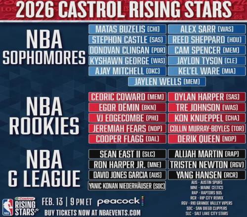 最后還是再提醒一遍,今年NBA全明星新秀挑戰(zhàn)賽在2月14日進行,楊瀚森跟所有發(fā)展聯(lián)盟球員一起被編入奧斯汀·里弗斯隊,記得關(guān)注。
