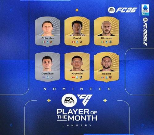 北京時間1月29日,意甲1月最佳球員候選名單公布,這6名球員為科隆博、喬納森-戴維、迪馬爾科、杜維卡斯、克爾斯托維奇、拉比奧。
