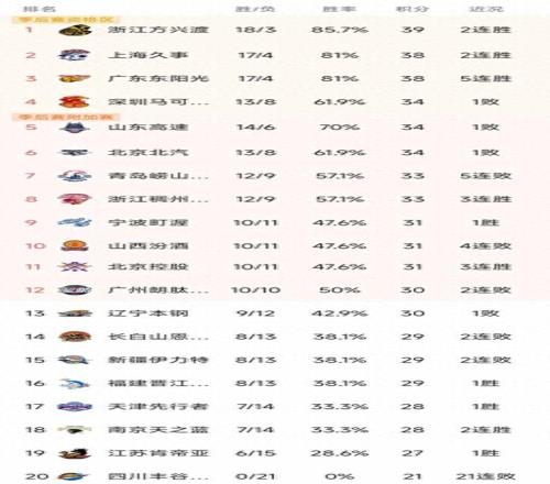 CBA排名一夜大變:上海第2,深圳第4,青島5連敗,四川21連敗墊底