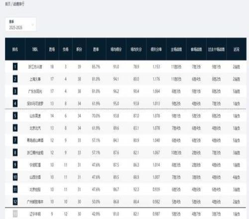 CBA積分榜最新排名!3隊哄搶第一,黑馬殺進前4,遼寧跌出季后賽