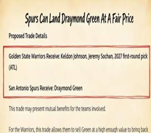 勇士送走格林,從馬刺換來(lái)凱爾登·約翰遜、索漢,附加一個(gè)27年首輪。