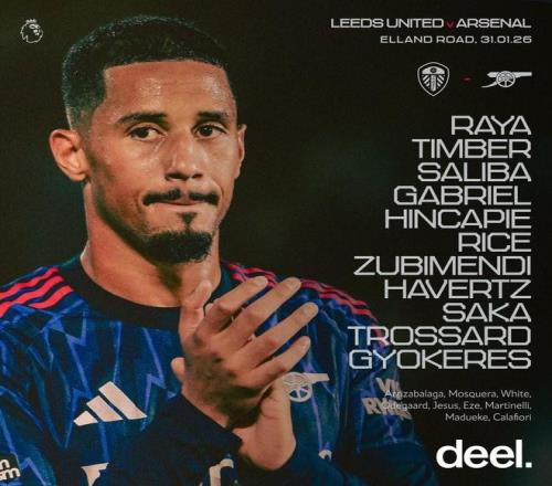 阿森納首發(fā):1-拉亞、12-廷貝爾、2-薩利巴、6-加布里埃爾、5-因卡皮耶、41-賴斯、36-蘇比門(mén)迪、29-哈弗茨、7-薩卡、19-特羅薩德、14-哲凱賴什 利茲聯(lián)首發(fā):26-達(dá)洛、2-博格爾、3-古德蒙松、6-喬-羅頓、5-斯特魯伊克、24-詹姆斯-賈斯廷、4-阿姆帕杜、44-格魯耶夫、18-施塔赫、11-阿倫森、9-卡爾弗特-勒溫