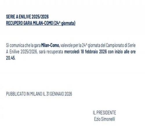 米蘭圈 據(jù)意甲聯(lián)賽官網(wǎng)的消息,米蘭主場與科莫的補賽時間確定,將在北京時間2月19日03:45進行。